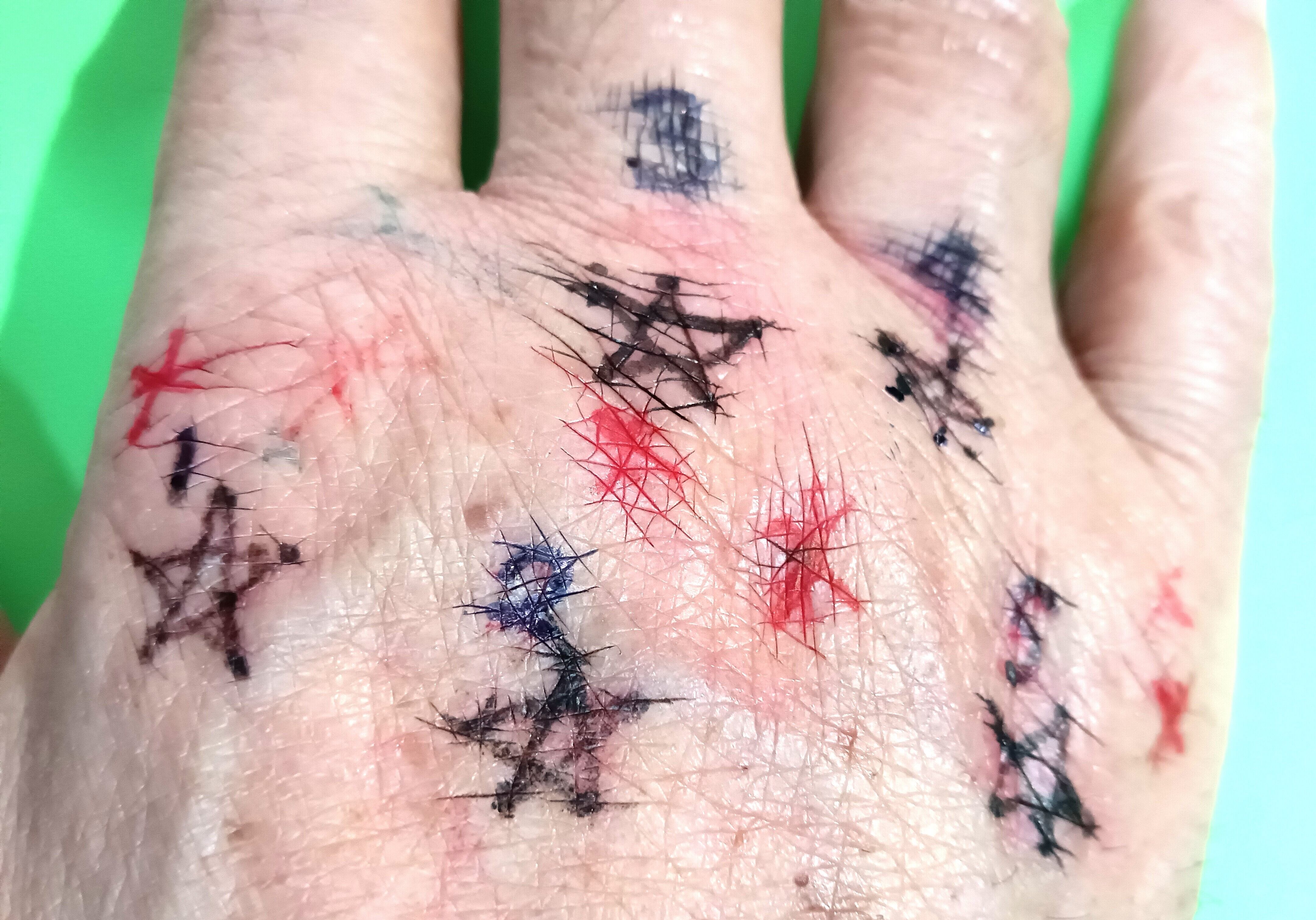 今、私の右手には掌(内側)から甲(外側)へと跨ぎ、