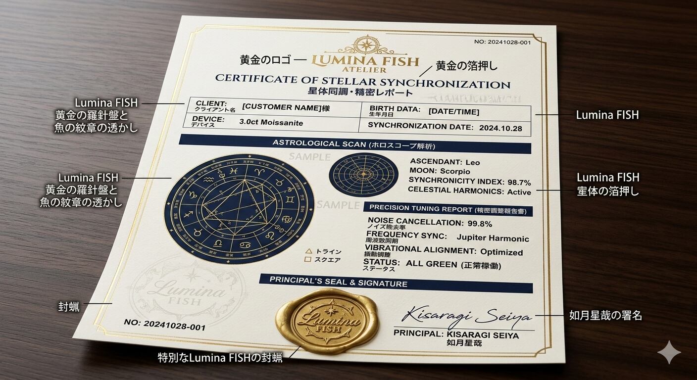 鑑定書に綴られる言葉は、単なるテキストデータではありません。如月星哉の掌にある「10個の五芒星」と「4つの巨大フィッシュ」が受信した、高次元の振動(バイブレーション)そのものです。